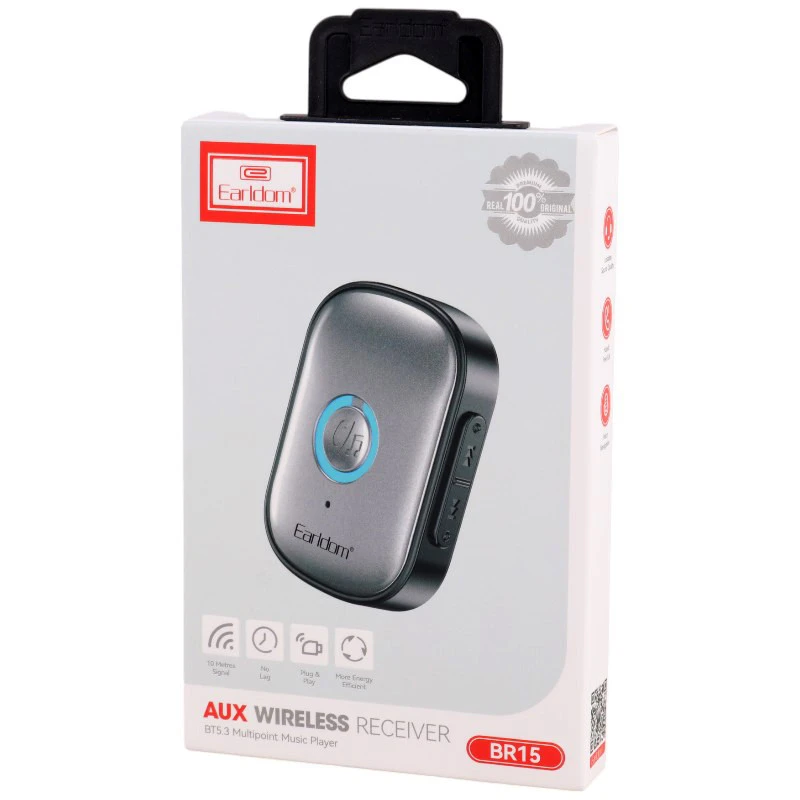 گیرنده موزیک ماشین به پورت 3.5 میلیمتری ضبط متصل میشود و یک ضبط صوت، هدفون یا اسپیکر سیمی را به یک ضبط صوت بلوتوثی، هدفون بلوتوثی و یا اسپیکر بلوتوثی تبدیل میکند. این گجتیکدریافت کننده بلوتوثی است که کاربر را از اتصال سیمی بی نیاز خواهد کرد. بنابراین اگر ضبط خودروی شما از فناوری بلوتوث پشتیبانی نمیکند، لازم نیست هزینههای زیادی برای تهیه یک ضبط صوت مدرن تر را پرداخت کنید. این گیرنده با داشتن فناوری بلوتوث سیستم صوتی بودن بلوتوث را به روز رسانی میکند، به گونه ای که میتوانید وایرلس از آن استفاده کنید.از ویژگی های قابل توجه این محصول کارآمد سازگاری گسترده با لپ تاپ، پخش کننده MP3، سیستم استریو خودرو، هدفون، سیستم استریو خانگی میباشد.با روشن کردن بلوتوث گوشی موبایل خود میتوانید اتصالی میان گوشی و ضبط ماشین برقرار نمایید. گیرنده موزیک ارلدام Earldom BR15 با استفاده از پورت AUX به ضبط یا اسپیکر متصل میشود و کاربران میتوانند با روشن کردن بلوتوث گوشی خود به آن متصل شوند. نسخه بلوتوث این وسیله کاربری، 5.3 است که اتصالی پایدار را تا فاصله 10-15 متر برقرار میسازد. به لطف آن از صدایی با بالاترین کیفیت و کمترین تاخیر برخوردار هستید.دانگل بلوتوث ضبط ماشین ارلدام مدل BR15 دارای باتری داخلی لیتیومی قابل شارژ با ظرفیت 120 میلیآمپرساعت است. این گیرنده با استفاده از درگاه USB-C شارژ میشود که پس از شارژ کامل، میتوانید به مدت طولانی با آن به موسیقی گوش دهید و یا مکالمه کنید.این دستگاه دارای پورت جک ۳.۵ میلیمتری برای اتصال به ورودی AUX دستگاههای صوتی و پورت تایپ سی برای تأمین برق مورد نیاز دستگاه است. همچنین مجهز به یک کارتخوان TF هستند که امکان پخش مستقیم موسیقی از کارت حافظه را فراهم میکند.با استفاده از این گیرنده، میتوانید دستگاههای فاقد بلوتوث را به صورت بیسیم به گوشی هوشمند یا تبلت خود متصل کرده و موسیقی یا محتوای صوتی مورد علاقهتان را پخش کنید.گیرنده صوتی بلوتوثی Earldom BR15 دارای یک میکروفون داخلی است و قابلیت مکالمه دارد. میکروفون داخلی امکان پاسخگویی به تماسها به صورت هندزفری را برای کمک به راحتی شما در رانندگی فراهم می نماید