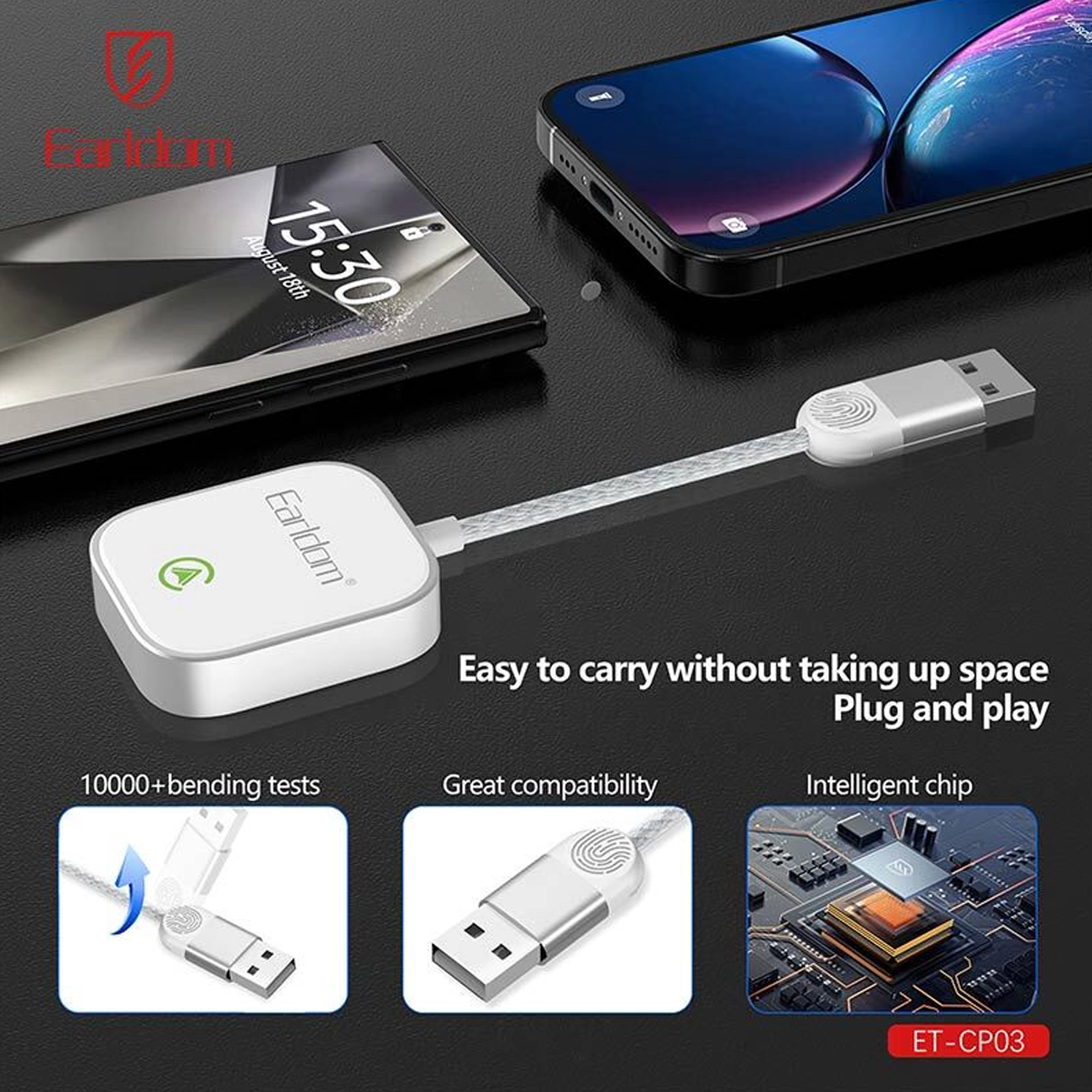 این محصول هم برای کاربران آیفون و هم برای گوشیهای اندرویدی طراحی شده است. رابط بیسیم ارلدام ET-CP03 با پشتیبانی از iOS 10 به بالا و Android 11 به بالا، طیف وسیعی از گوشیها را پوشش میدهد و محدودیتی در استفاده نخواهید داشت.
