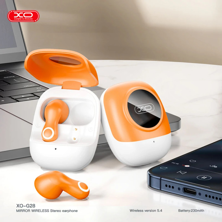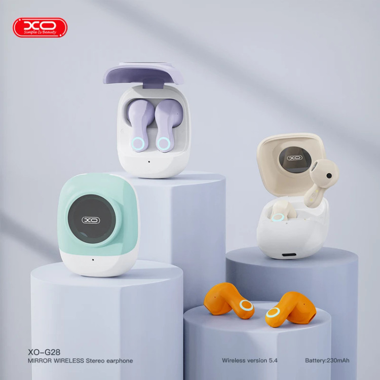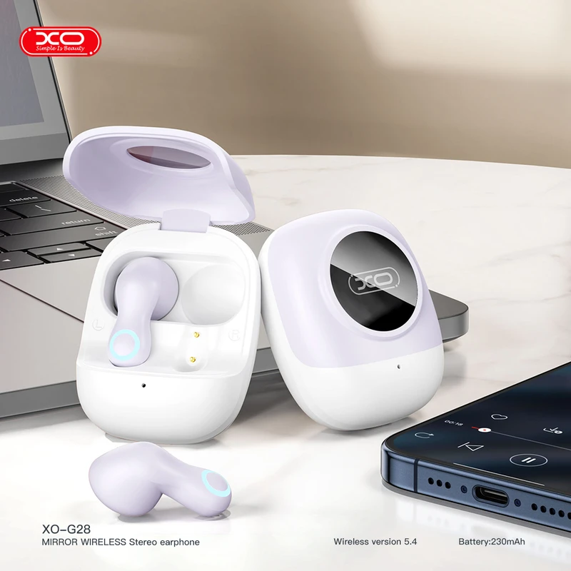 XO G28 یک هدفون داخل گوشی بلوتوث 5.4 TWS با قاب شارژ است. این هدفون از فناوری TWS (True Wireless Stereo) پشتیبانی می کند - هر دو هدفون به یکدیگر متصل می شوند تا یک مجموعه استریو بی سیم ایجاد کنند. کیف قابل حمل با باتری داخلی نه تنها امکان شارژ را فراهم می کند، بلکه هدفون ها را با خیال راحت در جیب، کیف یا کوله پشتی شما ذخیره می کند. دستان خود را آزاد کنید و هنگام کار، پیاده روی، تمرین یا رانندگی به موسیقی، رادیو اینترنتی گوش دهید. هدفون XO G28 TWS راه حل مناسبی برای گوشی های هوشمند، کامپیوتر، نوت بوک، تبلت و سایر کاربران دستگاه های دارای بلوتوث است. آنها با اکثر دستگاه های اندروید و iOS سازگار هستند. این هدفون همچنین دارای یک میکروفون است که به شما امکان می دهد بدون هیچ مشکلی تماس صوتی برقرار کنید. زمان مکالمه/گوش دادن به موسیقی با شارژ کامل تقریباً 270 دقیقه (بسته به سطح صدا) است که به لطف فناوری بلوتوث 5.4 کم مصرف است.