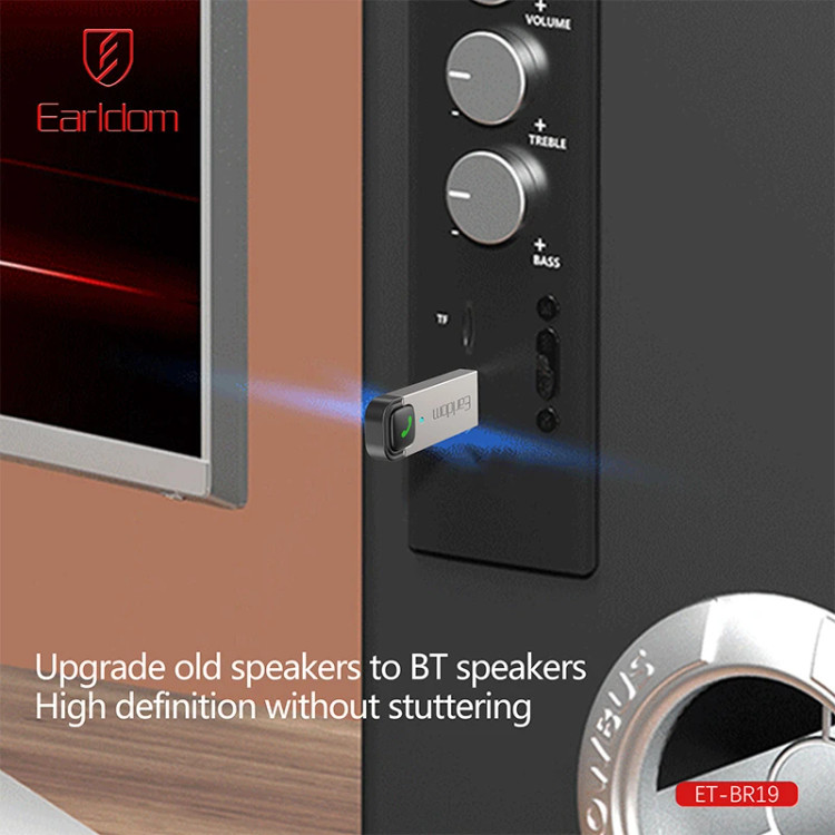 دانگل بلوتوث EARLDOM مدل BR19 کاربردی جهت مجهز کردن سیستم های صوتی به بلوتوث با استفاده از رابط USB می باشد . این رابط USB مناسب برای ضبط ماشین ، اسپیکر های USB خور ، سینما خانگی و …. بوده و با اکثر این دستگاه ها سازگاری کامل دارد . دانگل بلوتوث ارلدام BR19 سازگار با گوشی ها و تبلت های سامسونگ ، هواوی ، اپل و …. و دارای محدوده عمکلرد بلوتوث حدود 10 متری می باشد . قبلا برای پخش شدن موزیک سیستم ماشین از سی دی استفاده میشد رفته رفته از فلش و یا کابل AUX که پخش موزیک با AUX به دلیل وصل شدن گوشی به کابل دشوار است از این رو داشتن یک گیرنده بلوتوث که هیچ محدودیتی برای استفاده از موبایل ندارد لازم است. گیرنده بلوتوث ارلدام با قابلیت پخش موزیک با کیفیت و قابلیت مکالمه بسیار کاربردی و طرفداران زیادی دارد. دانگل بلوتوث ارلدام مدل BR19 جهت راحت تر شدن کاربر هنگام مکالمه دکمه ای را برای قطع و وصل کردن تماس روی بدنه دانگل طراحی کرده است که این مدل را نسبت ب بقیه مدل ها متمایز میکند.