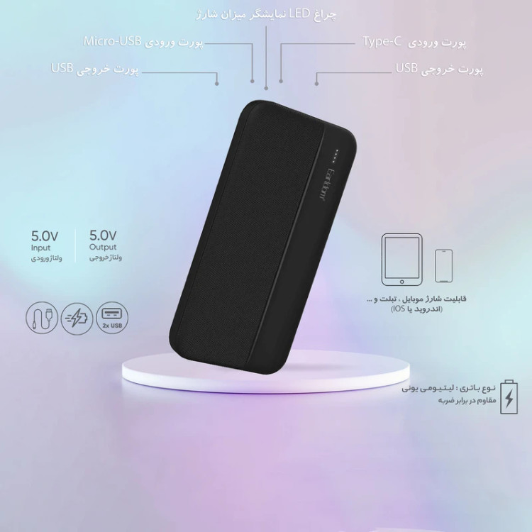 پاوربانک ارلدام مدل 54 ظرفیت 10000 میلی آمپر ساعت