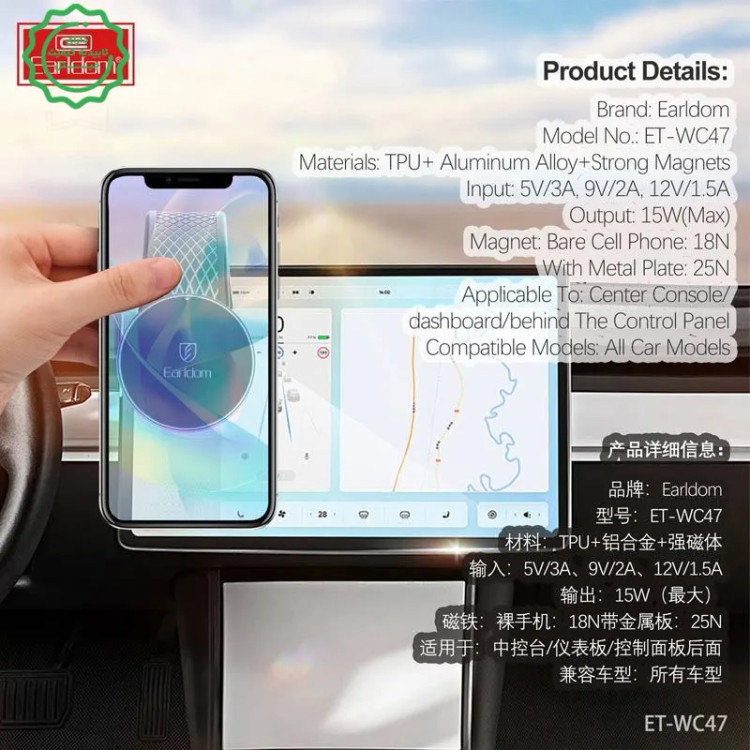 خروجی بیسیم: 15 وات (پشتیبانی از 5W/ 7.5W/ 10W/ 15W)