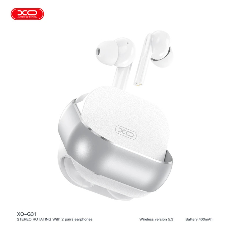 هدفون بلوتوثی XO مدل G31 با طراحی خلاقانه و کیس چرخشی ، ترکیبی از راحتی و کیفیت را برای شما به ارمغان می اورد. G31 با بلوتوث نسخه 5.3 اتصال سریع ، پایدار و کم مصرف را فراهم می کند. مدلG31 با داشتن باتری قدرتمند 400 میلی آمپر ساعت گزینه ای ایده ال برای مکالمه های طوانی مدت ، گوش دادن به موسیقی و استفاده روزمره است. طراحی ارگونومیک هدفون ها باعث می شودبه راحتی داخل گوش قرار گیرند و حتی در استفاده طولانی مدت نیز احساس راحتی کنید. G31 همراه با دو جفت هدفون عرضه می شود یعنی درون یک کیس دو عدد هدفون مجزا قرار دارد تا همزمان دو کاربر بتوانند از ان استفاده کنند و یا در مواقع مختلف از جفت دوم به عنوان جایگزین بهره ببرید. اگر به دنبال یک هدفون بلوتوثی متفاوت ،کاربردی و با ارزش خرید بالا هستید XO-G31 انتخابی عالی خواهد بود.