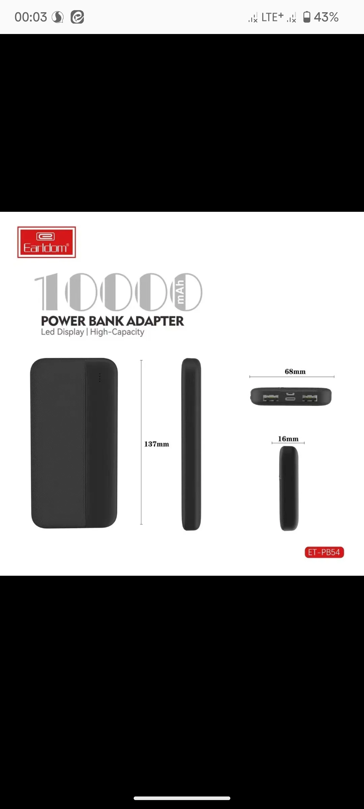 پاوربانک Earldom 10000mAh مدل ET- PB73 - مشکی