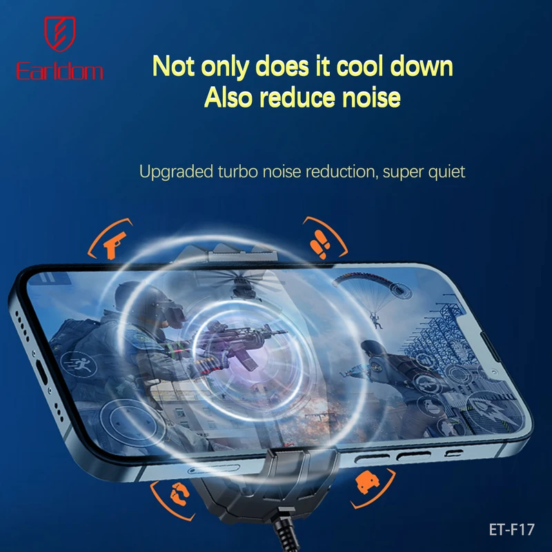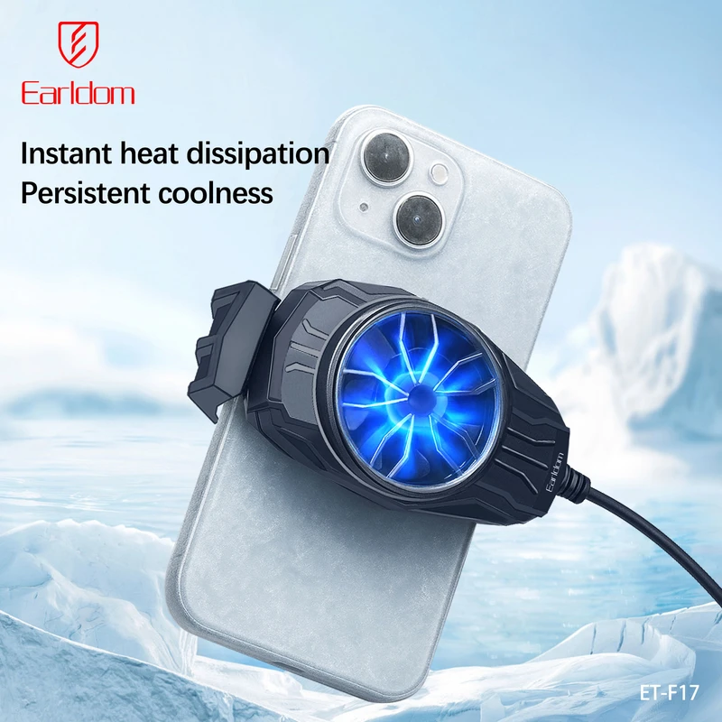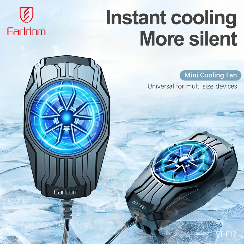 خنککننده گوشی Earldom F17 یک فن کوچک و حرفهای برای کاهش دمای گوشیهای هوشمند است که با طراحی جمعوجور، سبک و قابل حمل، تجربهای راحت و بدون مزاحمت ایجاد میکند. بدنه محصول از ABS و سیلیکون ساخته شده و رنگ آن مشکی است. این فن با اتصال مستقیم Plug-in و توان کاری 5V/1A کار میکند و برای راهاندازی نیاز به اتصال کابل به آداپتور شارژ یا پاوربانک دارد و شارژی نیست. برای برخی گوشیها، میتوان با استفاده از OTG برق فن را از گوشی تامین کرد؛ اما باید توجه داشت که این روش باتری گوشی را با سرعت بیشتری تخلیه میکند. با ابعاد 83×50×38 میلیمتر و وزن خالص 59 گرم، این فن کوچک و مینیمال است و دسترسی به گوشی را مسدود نمیکند. طراحی هوشمند آن امکان خنکسازی فوری و مداوم گوشی را فراهم کرده و از داغ شدن و کاهش عملکرد دستگاه جلوگیری میکند.